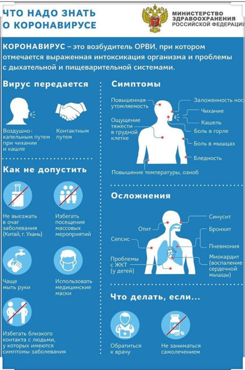 • Регулярно и тщательно обрабатывайте руки спиртосодержащим антисептиком для рук или мойте их водой с мылом. o Почему? Обработка рук спиртосодержащим антисептиком или их мытье водой с мылом позволяет уничтожить вирусы, которые могут находиться на коже.• Держитесь от окружающих на расстоянии не менее одного метра. o Почему? При кашле, чихании или разговоре из носа или рта человека выделяются мельчайшие капли, которые могут содержать вирус. Находясь слишком близко, вы можете вдохнуть эти капли и заразиться, если человек болен COVID-19.• Избегайте мест большого скопления людейo Почему? В местах большого скопления людей намного выше вероятность оказаться в тесном контакте с человеком, инфицированным COIVD-19, и труднее поддерживать с окружающими дистанцию в 1 метр.• По возможности, не трогайте руками глаза, нос и рот.o Почему? Мы прикасаемся руками к очень многим поверхностям, и вирус может попасть на руки. Грязными руками мы можем перенести вирус на слизистые оболочки глаз, носа или рта. Оттуда он способен попасть в организм и вызвать инфекцию.• Как вам, так и окружающим следует строго соблюдать правила респираторной гигиены. Для этого при кашле или чихании необходимо прикрывать рот или нос сгибом локтя или салфеткой. Использованную салфетку следует немедленно выбросить и вымыть руки.o Почему? Вирус передается через мелкие капли. Соблюдая правила респираторной гигиены, вы можете защитить окружающих от таких вирусных заболеваний, как ОРВИ, грипп и COVID-19.• Самоизолируйтесь дома до выздоровления, даже если у вас легкие симптомы заболевания, например, кашель, головная боль, небольшое повышение температуры или легкий насморк. Попросите кого-нибудь доставлять вам продукты на дом. Если вам необходимо выйти из дома, надевайте маску, чтобы избежать заражения окружающих. o Почему? Исключение контактов с окружающими позволит защитить их от заражения COVID-19 и другими вирусными заболеваниями. • Если у вас повысилась температура, появились кашель и одышка, обратитесь за медицинской помощью, по возможности заранее позвонив по телефону; следуйте указаниям местных органов здравоохранения. o Почему? У центральных и местных органов здравоохранения имеется самая актуальная информация об эпидемиологической обстановке в районе вашего проживания. Обращение к врачу по телефону позволит ему оперативно направить вас в специализированное лечебное учреждение. Кроме того, тем самым вы обезопасите себя и поможете предотвратить распространение вирусных и других инфекций.• Следите за последней информацией из авторитетных источников, таких как ВОЗ и местные/национальные органы здравоохранения