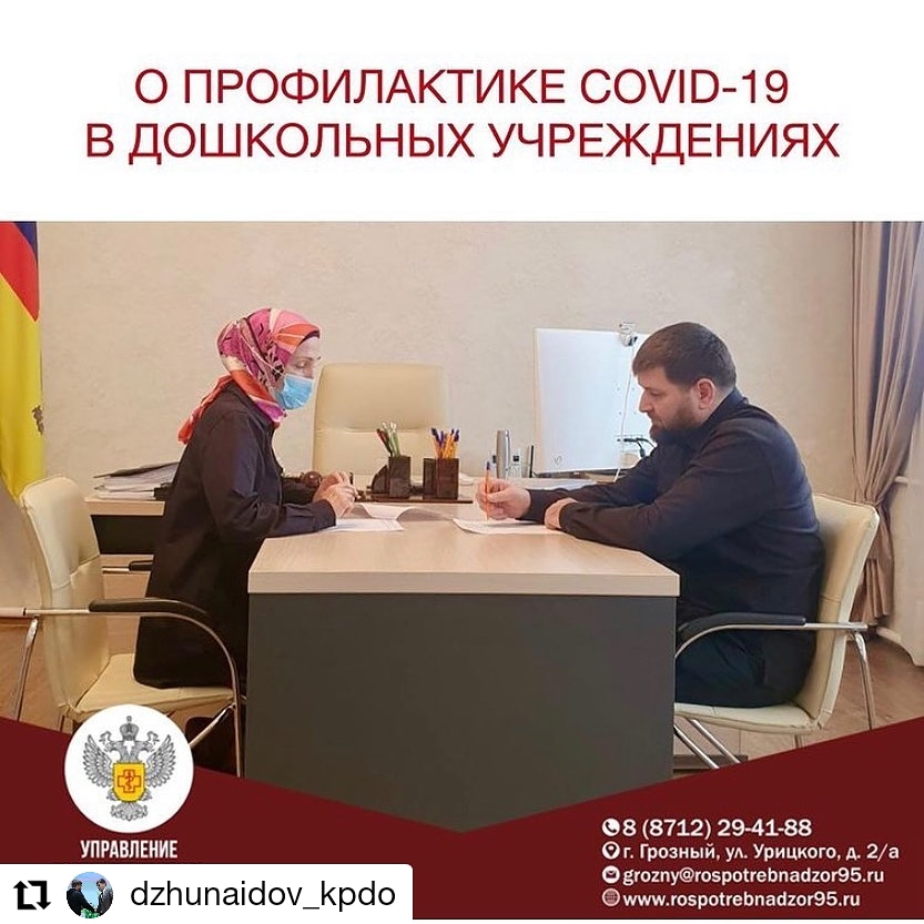 26.03.2021Сегодня состоялась встреча руководителя Управления Роспотребнадзора по Чеченской Республике Риты Темурлаевой с председателем Комитета Правительства ЧР по дошкольному образованию Асланбековым Джунаидовым.
