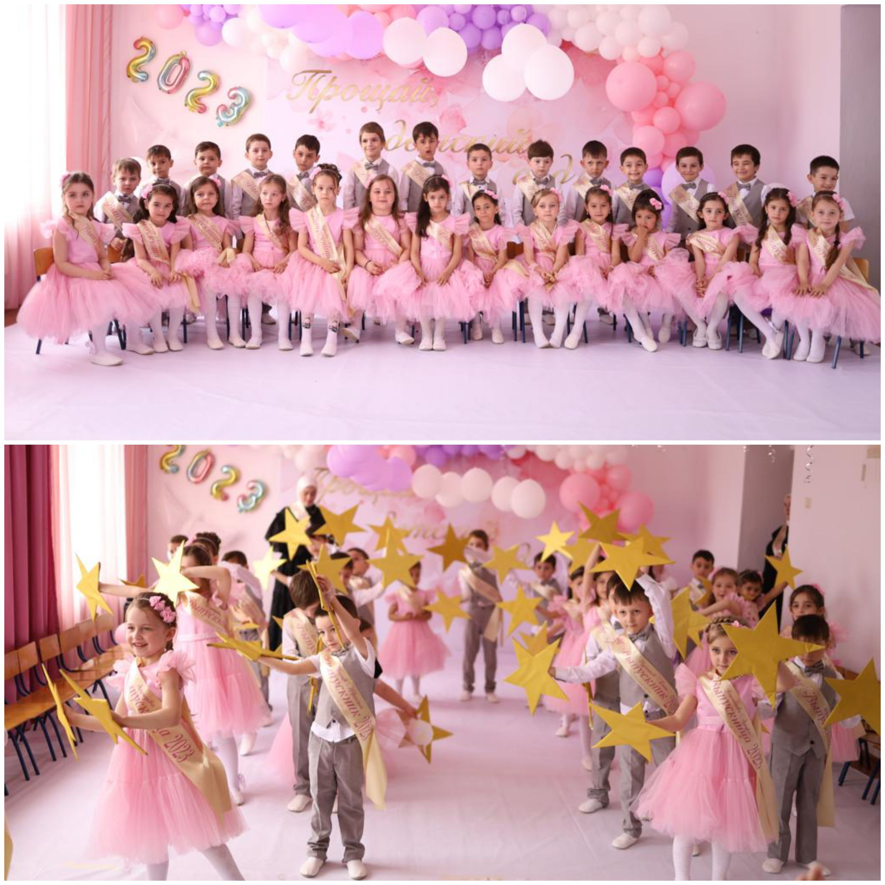 25 мая под торжественную музыку вошли дошколята в праздничный зал. В этот день ребята и дошкольные работники подготовили прекрасный праздник. Дети пели песни, танцевали, читали стихи, демонстрировали свои таланты. А взрослые поддерживали ребят бурными аплодисментами и не скрывали радости, гордясь успехами своих чад. По сложившейся доброй традиции заведующий детским садом Мусханова Радима Вахаевна, поздравила ребят и родителей с праздником. Каждому ребёнку были вручены Дипломы выпускника детского сада. После утренника будущие первоклашки выбежали на улицу с шарами и отпустив их в небо, загадали заветное желание.
