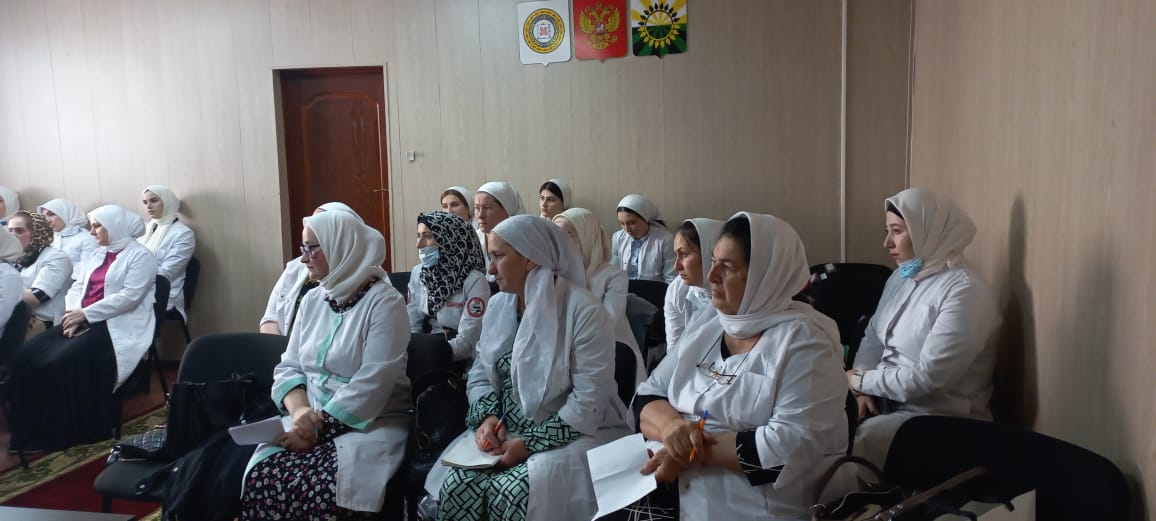 26.05.2023Районное методическое объединение медсестер.26 мая в отделе дошкольного образования Грозненского муниципального района состоялось районное методическое объединения медицинских сестер ДОУ по теме "Анализ выполнения годовых задач учебного года". Ознакомление, обсуждение и принятие плана реализации летней оздоровительной кампании в ДОУ на 2023 год.Перспективы в работе на новый учебный год. Семинар начался с поздравления медицинских сестер с профессиональным праздником "Международный день медицинской сестры", который состоялся 12 мая. Затем руководитель МО . Адамусиева М.Р. выступила об итогах работы методической работы медицинских работников. В ходе семинара мед. сестры делились опытом работы и остановились на принципах по организации питания в ДОУ. Отметили, взаимодействие медицинской службы, педагогов и родителей в работе. Во второй части семинара выступила медсестра Садыкова Хеда Саидовна МБДОУ " "Седарчий" ст.Петропавловская", она рассказала какие мероприятия проводятся в детском саду по укреплению здоровья детей в ЛОП, а также показала презентацию "Физическое развитие образовательная область ООП ДОО".